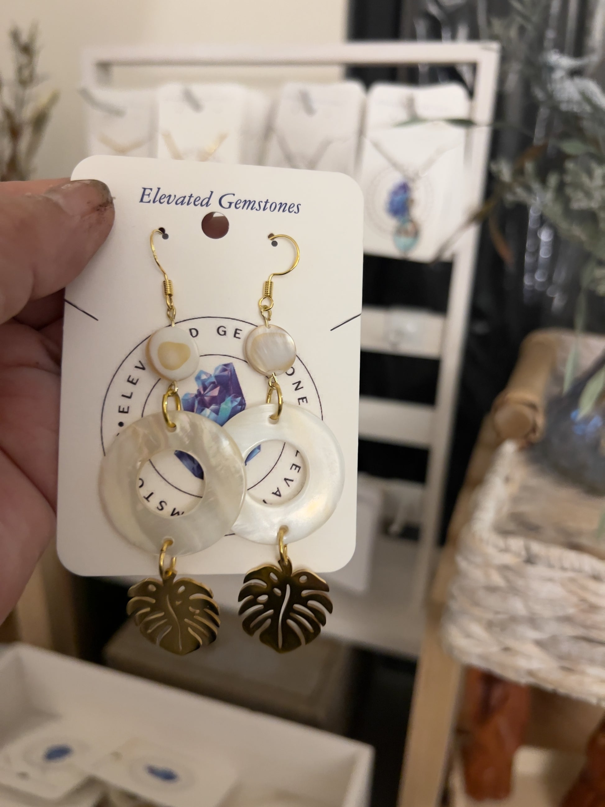 Round Shell and Monstera Earrings